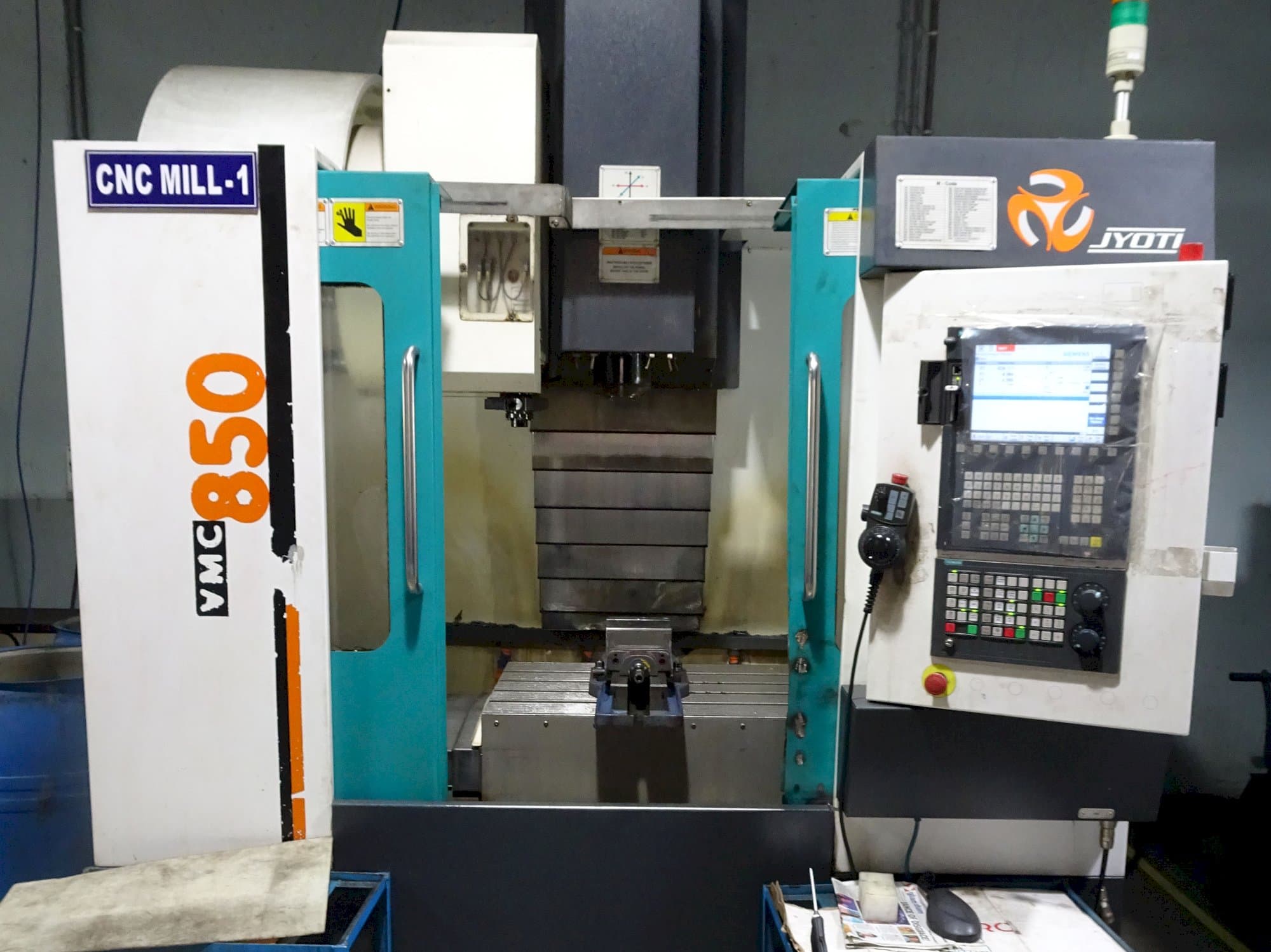 Šis "JYOTI VMC-850" vertikalus apdirbimo centras buvo pagamintas 2015 m. Indijoje ir turi apie 7200 darbo valandų. Su SIEMENS SINUMERIK 828D valdymo bloku šis modelis išsiskiria dėl puikių darbo sąlygų. 4-osios ašies variklis ir pavara (SIEMENS) tiekiami kartu su mašina.